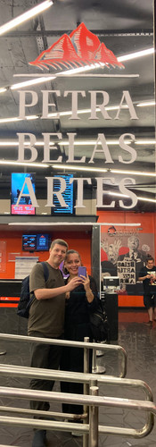 Eu não fazia ideia do que era o Noitão, mas aí ele me explicou. “Você vira a noite assistindo a 3 filmes no Cine Belas Artes”. Ele foi para esse evento e eu continuei com o pessoal do VCJ. No dia seguinte, vejo uma mensagem do Douglas no meu celular. Um convite. Mesmo depois de ter passado madrugada à dentro no cinema, ele me chamou para ir ao Belas assistir mais 3 filmes de Oscar. Mesmo achando filmes de Oscar um saco, eu fui. Passamos o sábado, o domingo e a segunda lá. Conheci o cinema e assim começava meu namoro com o Douglas — que 6 meses depois se tornou casamento.